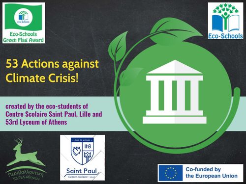 Δυο βραβευμένα με “Πράσινη Σημαία Οικολογικών Σχολείων” ECO-SCHOOLS συνεργάζονται στο πρόγραμμα Erasmus+: Οι μαθητές/-ήτριες του σχολείου μας και του γαλλικού σχολείου Centre Scolaire Saint Paul, Lille δημιούργησαν πρωτότυπο ψηφιακό εκπαιδευτικό υλικό με θέμα την προστασία του περιβάλλοντος και την προβολή καλών οικολογικών πρακτικών.